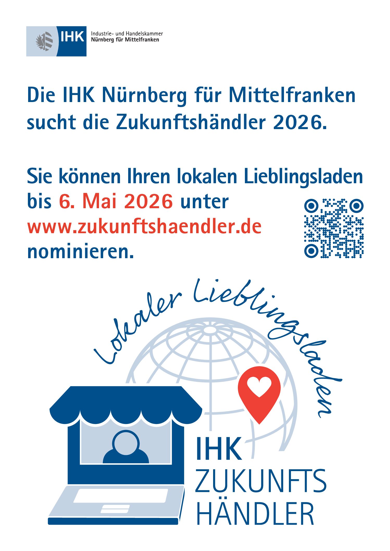 Sie möchten uns dabei helfen, den Wettbewerb „IHK-Zukunftshändler“ bekannter zu machen? Das freut uns! Gerne können Sie das Material auf dieser Seite dafür nutzen, beispielweise für Aushänge oder Postings.